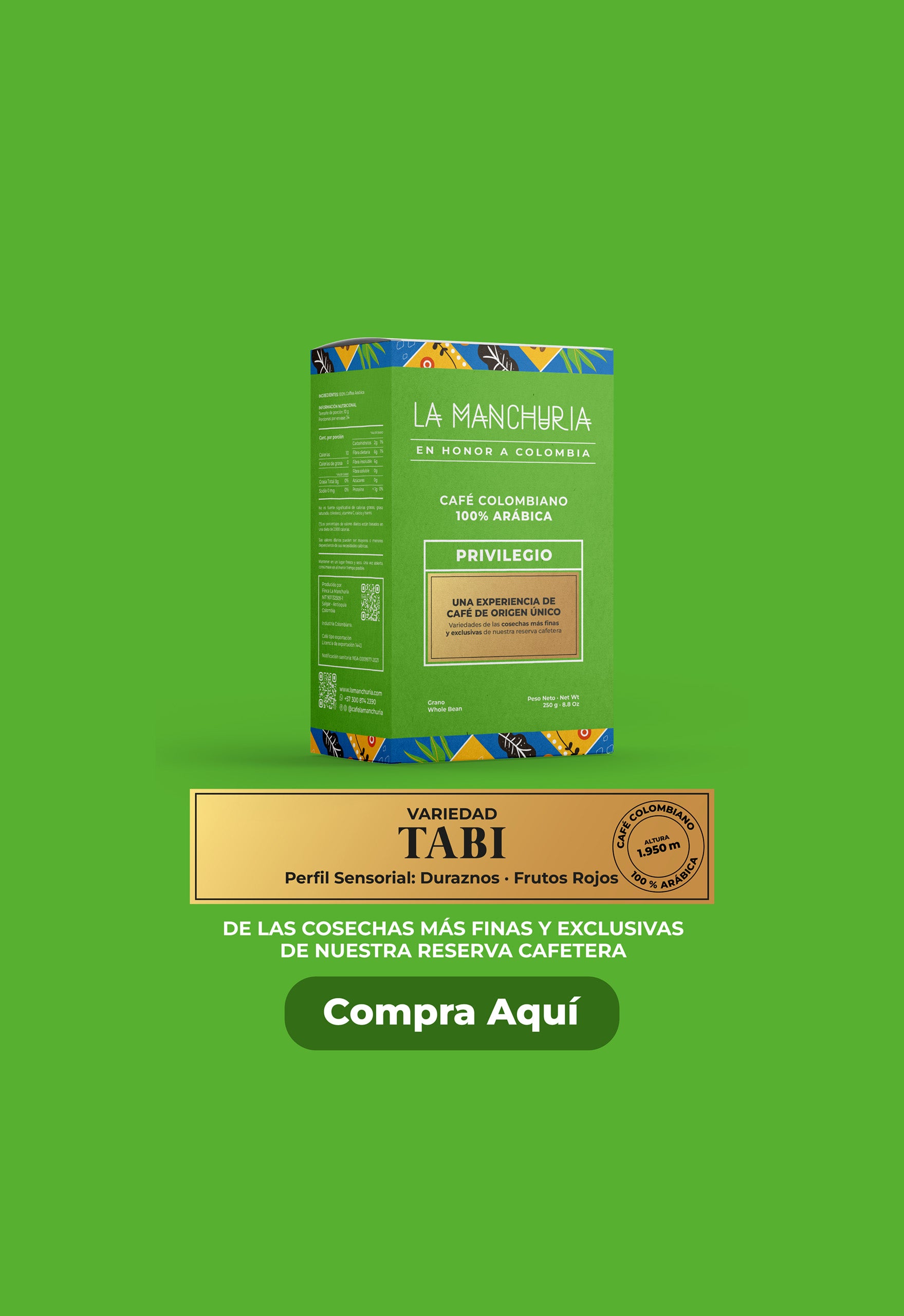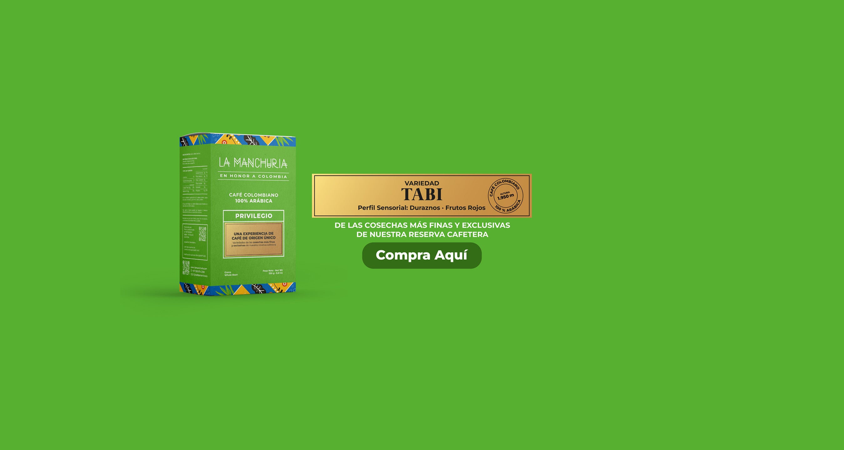 Café La Manchuria es un Café Arábica de altura cultivado, procesado y tostado entre los 1.600 y 2.000 m.s.n.m., enclavado en lo alto de las montañas, bañado por las corrientes frías que se generan entre los Farallones del Citará y el Cerro Plateado en la cordillera occidental de los Andes, regulado por las brisas del océano pacífico.