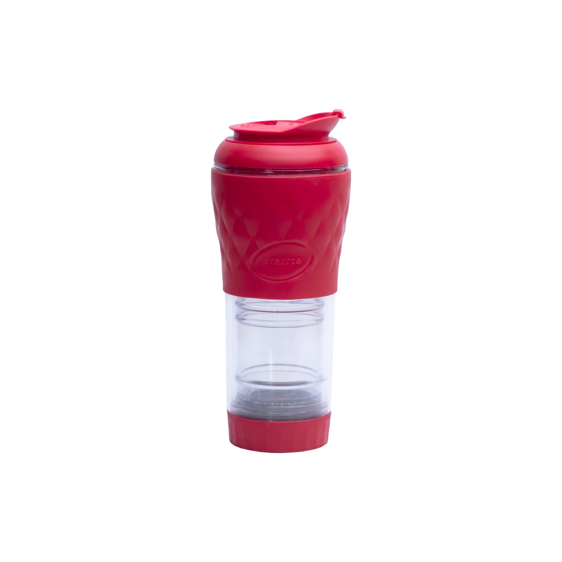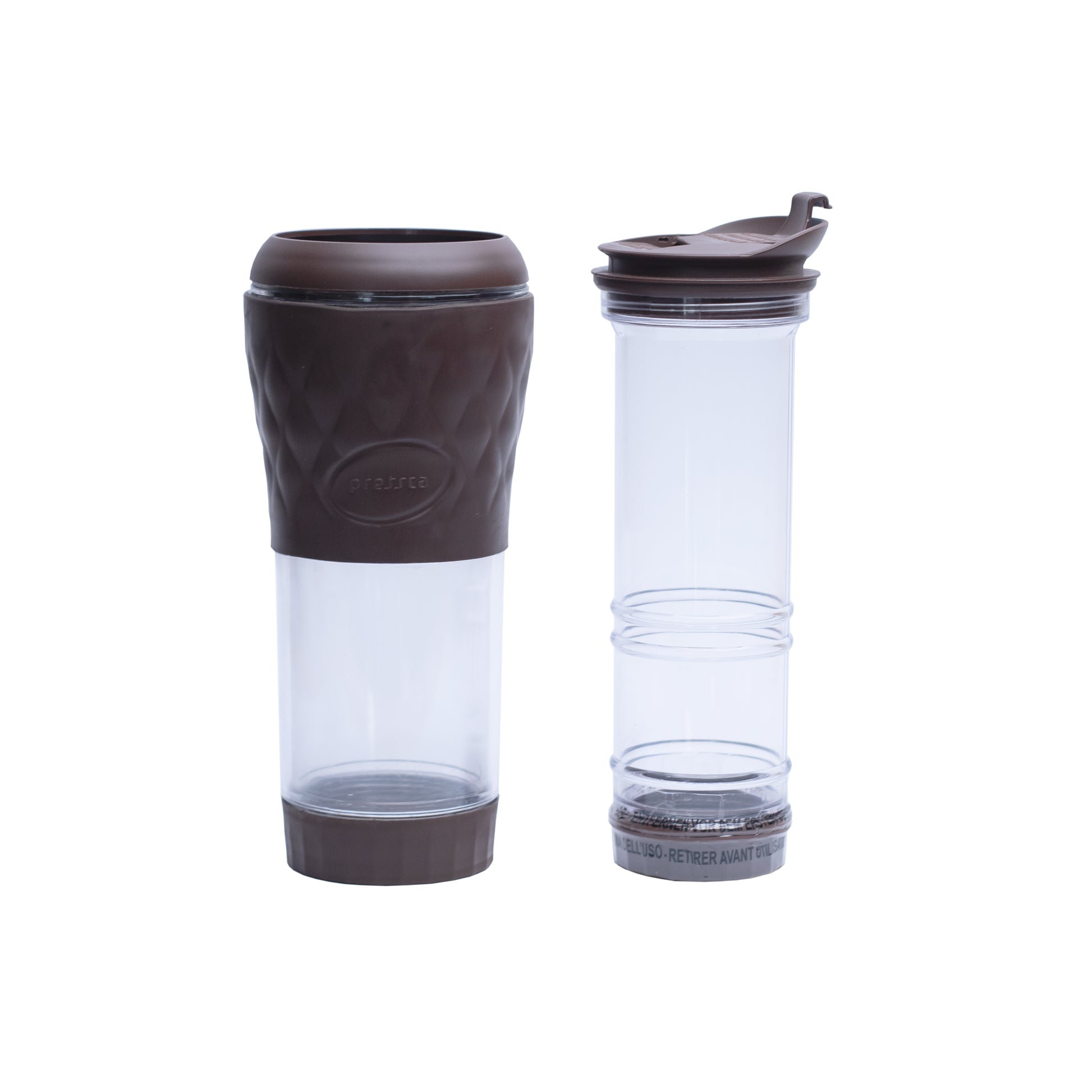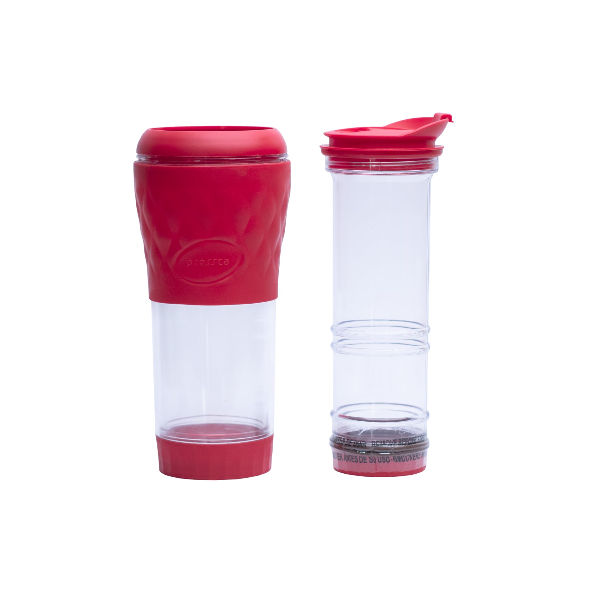 Cafetera portátil con capacidad de 350 ml, sirve hasta 2 tazas medianas o 5 tazas pequeñas.